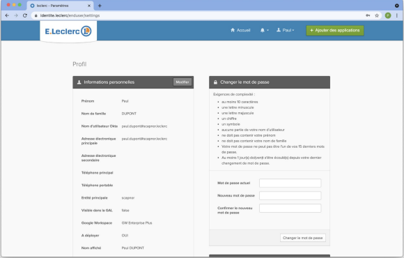 Vous apercevez vos informations personnelles. Vous pouvez les vérifier et les corriger ici. C’est ici aussi que vous pouvez changer votre mot de passe.