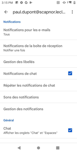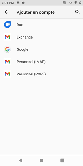Installation messagerie sur Android