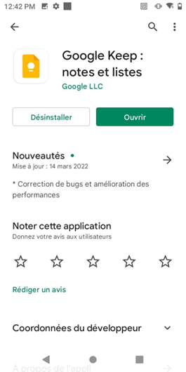 Sur le Play Store